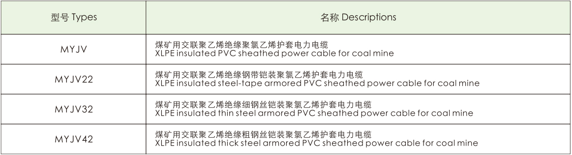 適用于交流額定電壓10KV及以下,煤礦電力設備傳輸電能用。